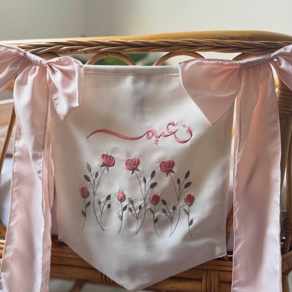 أضيفي لمسة مميّزة إلى سرير صغيرك مع تعليقة سرير أنيقة مطرزة بالاسم أو الحرف الأول. مصممة بخيوط عالية الجودة وأشرطة ناعمة بألوان راقية لتمنح السرير طابعًا ملكيًا يعكس الحب والاهتمام. مثالية لتزيين غرفة المواليد، التصوير، أو كهدية فاخرة تبقى ذكرى خالدة.
