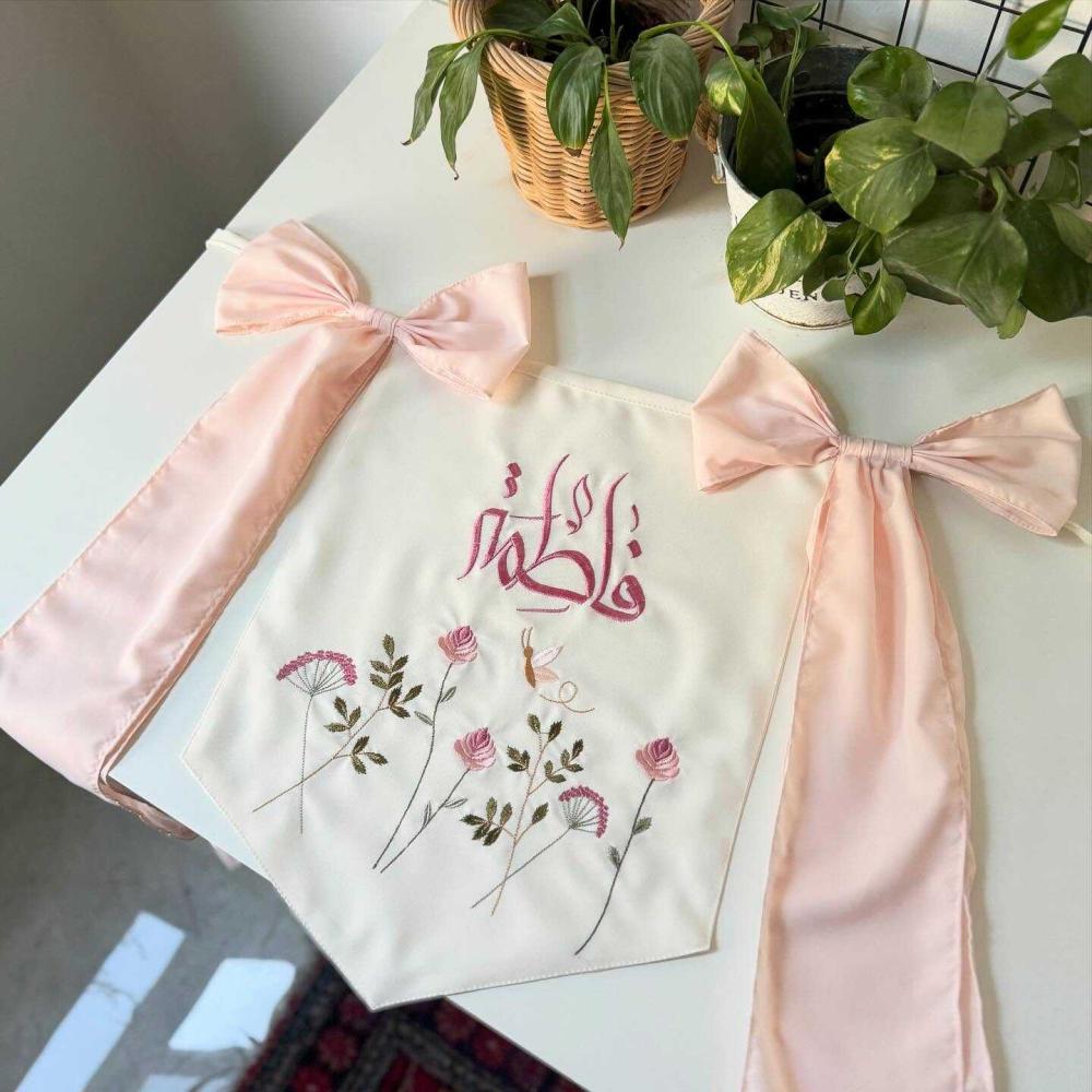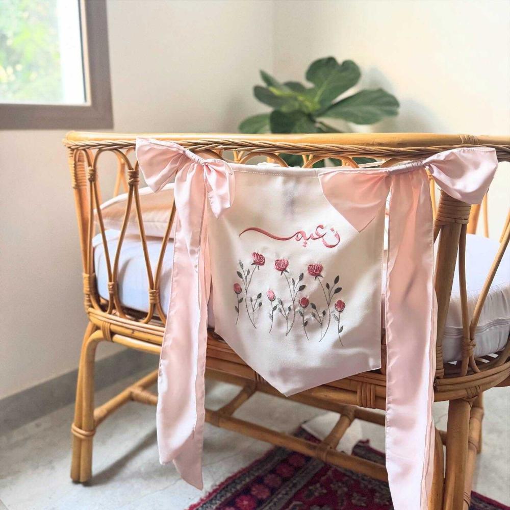 تعليقة سرير مواليد بالاسم – لمسة فخامة وأناقة لسرير طفلك ✨