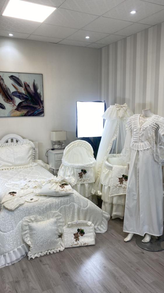 استقبلي مولودك بأناقة لا مثيل لها مع طقم استقبال مواليد مخصص بالاسم المصمم خصيصاً ليحمل اسم طفلك الغالي. طقم فاخر يجمع بين الفخامة والعملية ليكون هدية مثالية لكِ ولطفلك.