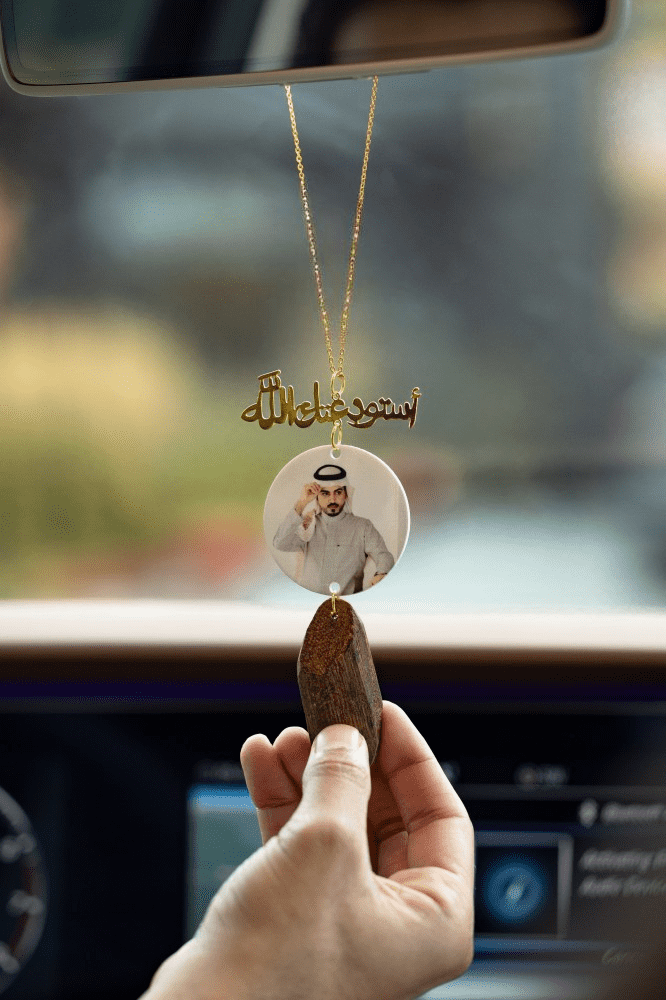 تعليقة سيارة استودعتك الله وكسرة عود فاخرة – لمسة فخامة تفوح بعبيرك!. اجعل سيارتك تعكس ذوقك مع تعليقة عود طبيعي المصممة خصيصًا باسمك، والمزودة بكسرة عود تعبق بالأناقة والرقي.