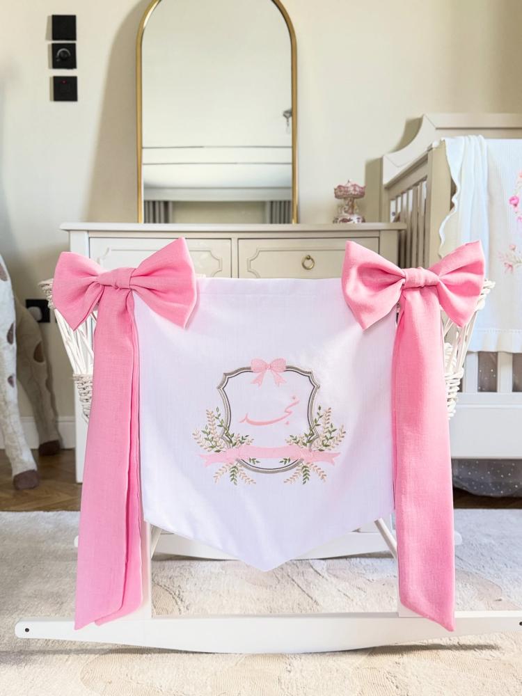 أضيفي لمسة مميّزة إلى سرير صغيرك مع تعليقة سرير أنيقة مطرزة بالاسم أو الحرف الأول. مصممة بخيوط عالية الجودة وأشرطة ناعمة بألوان راقية لتمنح السرير طابعًا ملكيًا يعكس الحب والاهتمام. مثالية لتزيين غرفة المواليد، التصوير، أو كهدية فاخرة تبقى ذكرى خالدة.